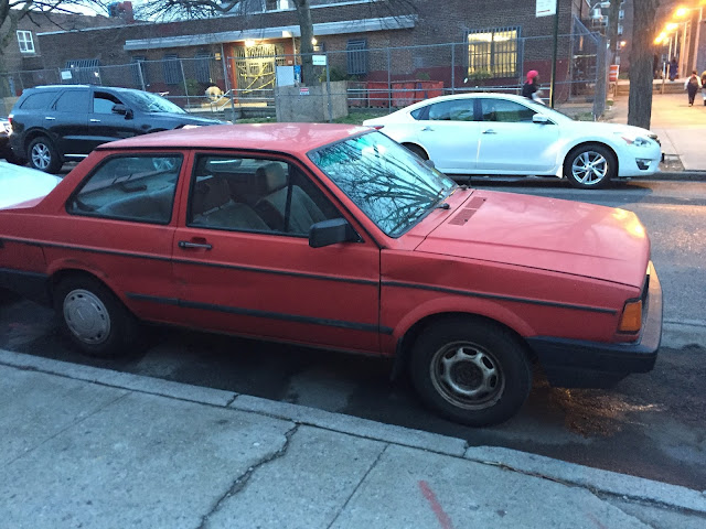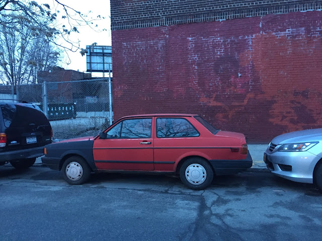 This is a 1990 Volkswagen Fox in (mostly) Tornado Red. Even though it was sold in North America for 8 years from 1987-1993 the Fox is an utterly forgotten car.
